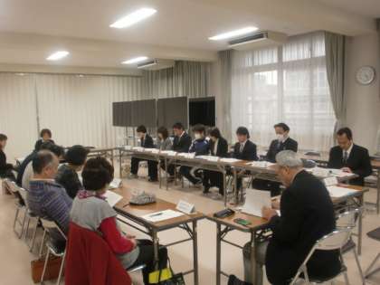 学校協議会の委員7名、区役所から1名、本校の教員が10名で協議しました。
