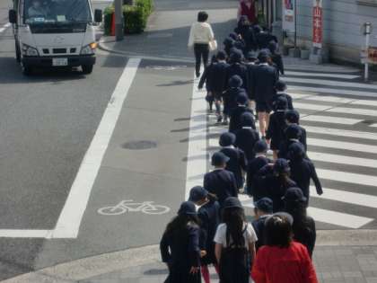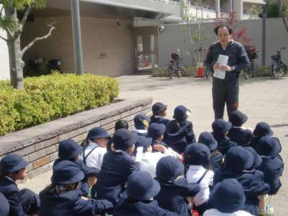 子ども達の登下校の安全確保をめざして、班ごとに通学路を通って集合場所までの往復の道を歩きました。