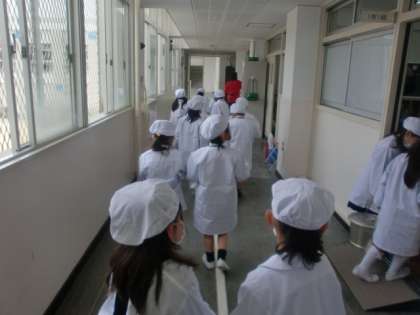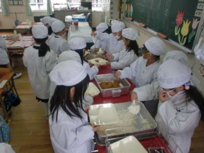 今日から学校給食が始まりました。がんばって給食当番もやりました。