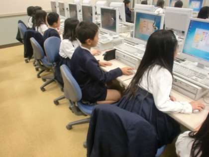 3年2組が総合に時間にパソコン室で時間割を作成していました。デザインを自分で選んで、自分だけの時間割を作ることができるのが楽しかったようです。