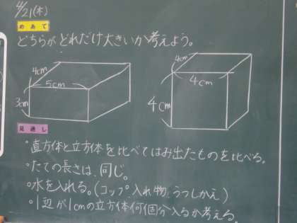 たて4cm、よこ4cm、高さ4cmの立方体では、