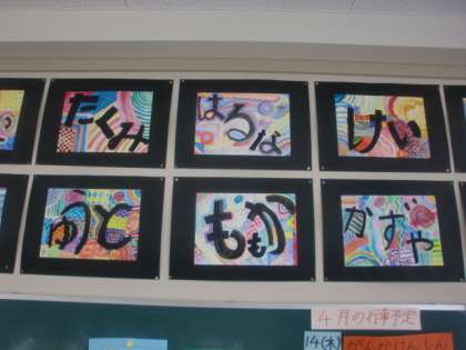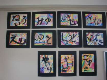 5年1組 図画工作科」「重ねた色で名前をデザインしよう」