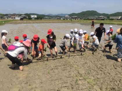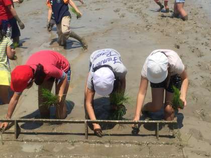 子ども達は泥んこの中で田植えをしていました。田植えがこんなに大変だとは思っていなかったようです。