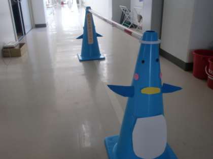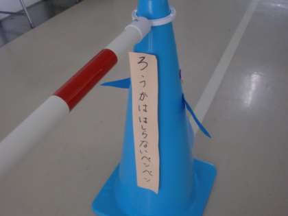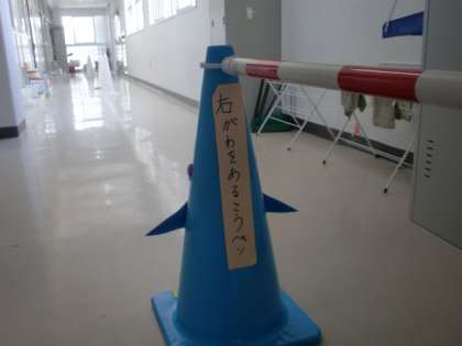 右側歩行週には廊下にコーンを置いていることはお話ししました。