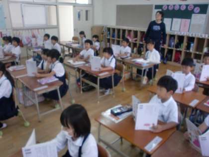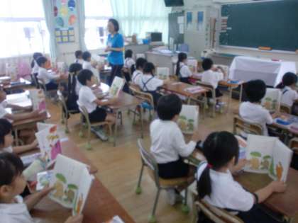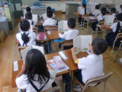みんな、とてもよい姿勢で、教科書を立てて本を読んでいます。声もしっかりと出ていました。