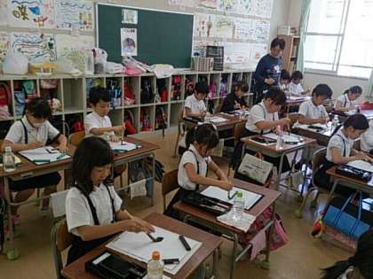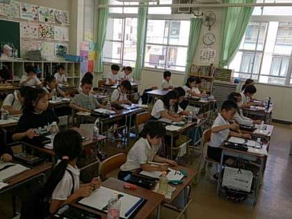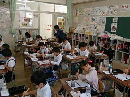 3年生から始まる「毛筆」。今日は、初めて字を書きました。