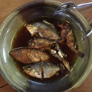 昼食は、名物の手こね寿司、伊勢うどん、それに昨日釣った魚の煮付けです。