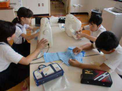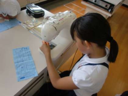 ミシンの使い方を学習しました。今はミシンを使う家もあまり多くはないのではないかと思います。そういう意味で、学校での学習が貴重かも知れませんね。子ども達はとても真剣に取り組んでいました。