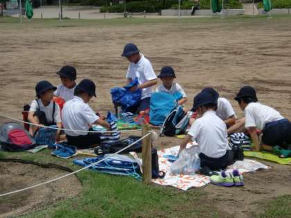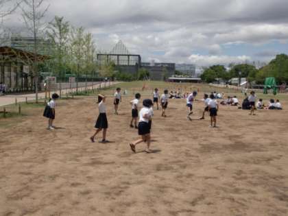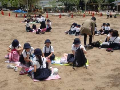 天王寺公園の「てんしば」でお弁当を食べました。芝はまだ生えそろってはいませんでした。