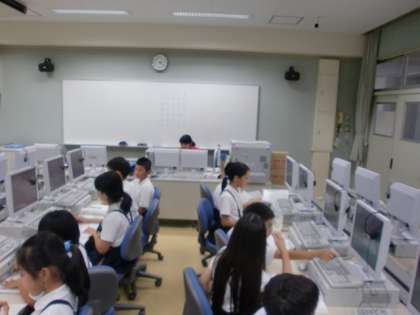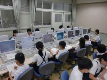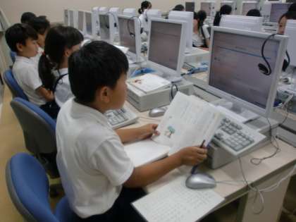 パソコンを使って漢字の成り立ちを調べています。