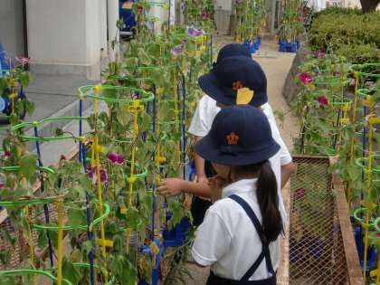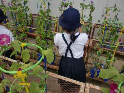 二日間のお休みの後なので、たくさんのあさがおが花をつけていました。明日はもっと咲くでしょうね。楽しみにしていてくださいね。