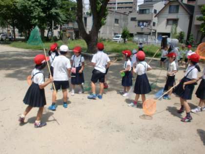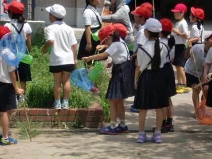 あみと虫かごをもって長柄公園に出かけました。モンシロチョウ、アゲハチョウ、カナブンなどがいました。セミの抜け殻もありました。今週はセミの声がしています。