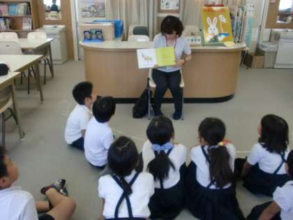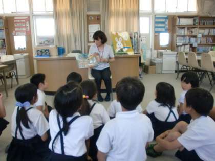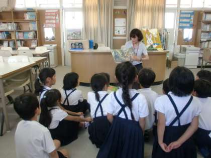 今週も昼休みに図書館補助員の片嶋さんが、絵本の読み聞かせをしてくださいました。