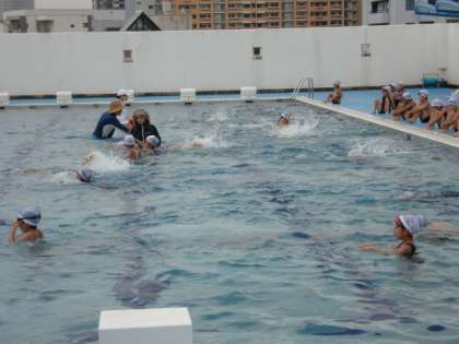 水にも随分と慣れて、かなり大胆に潜ったり、浮いたり、泳いだりしています。深いプールも恐くはないようです。