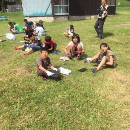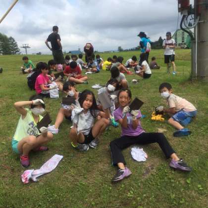 焼き板を磨いています。はじめはススだらけでしたが、磨いているうちに金色?に光りました。