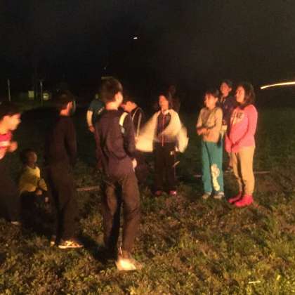 キャンプファイアーの出し物はグループごとに準備したもので、ゲームあり、クイズあり、劇ありの楽しいものでした。