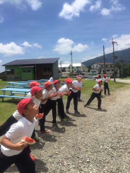 スイカの後は、種飛ばし合戦です。
