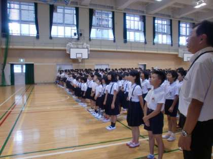 今日から2学期が始まりました。あいにくのお天気でしたが、みんな「おはようございます。」と元気に登校してきました。