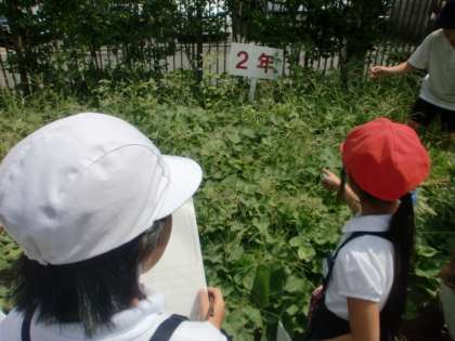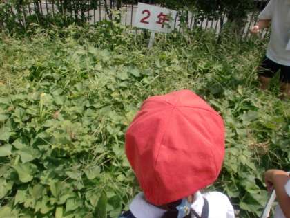 春に植えたジャガイモを見に学習園に行きました。子どもたちからは、「すごく大きくなっている!」「葉っぱが大きい!」という声が聞かれました。