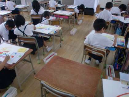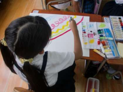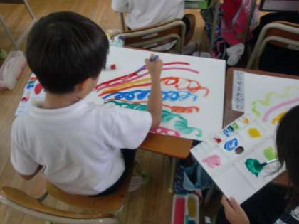 水彩絵の具を使って、いろいろな色を作って、ぬって楽しみました。