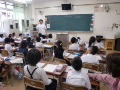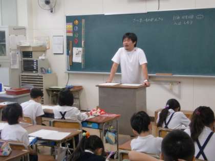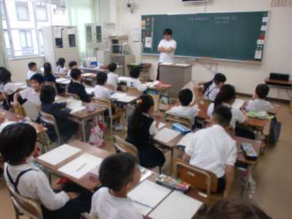 1学期に植えたさつまいもの観察ノートを書いています。実がなる野菜は育てるのが楽しみです。