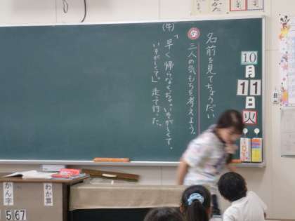 物語文「名前を見てちょうだい」を読んでいます。今日は、登場人物の気持ちを考えながら読みました。