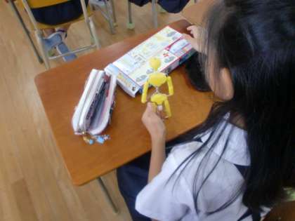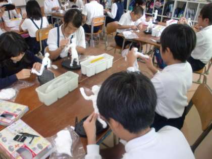紙粘土を使って将来の自分の姿を作ります。芯をうまく使って動きのある人形を作れるといいですね。