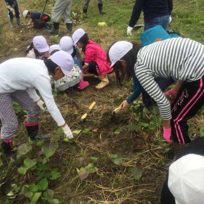 春に植えたサツマイモを掘りました。たくさん出てくるので大喜び。
