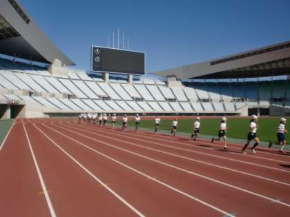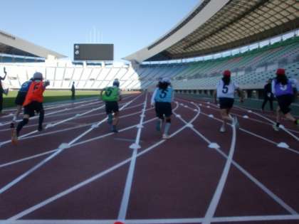 1周400メートルのトラックは、オリンピックなどと同じですが、テレビで観るよりもはるかに広く感じます。ボルトならあっという間ですが、子ども達には遠い距離です。
