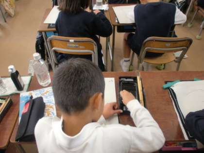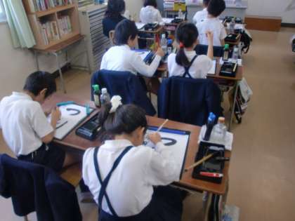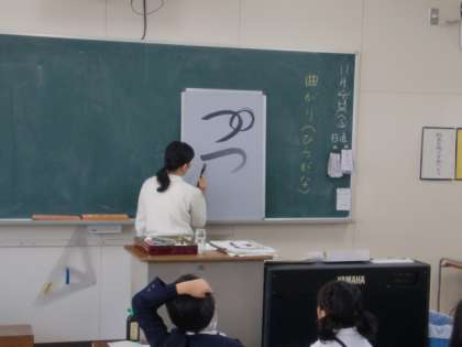 「釣り」という字で「曲がり」の練習をしました。力を抜いて上手く曲がります。