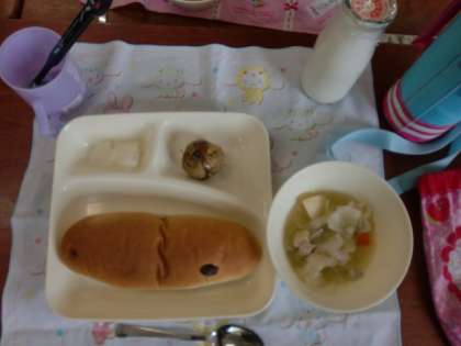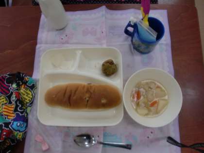 今日は、大阪名物「たこやき」ならぬ「たこボール」が出ました。冷凍?いえいえ、一つ一つが調理員さんの手作りです。