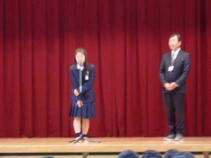 今日から、5年生に佐藤さんという転入生が来ました。児童朝会と5年2組の朝の会であいさつをしました。大阪市立放出小学校からの転入です。早く豊仁小学校に慣れてくださいね。