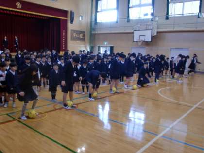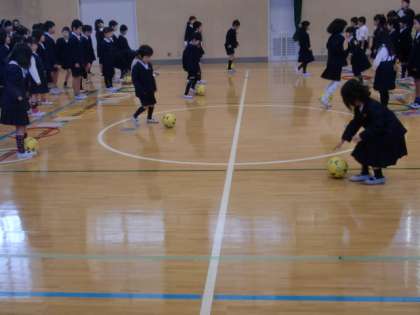 低学年の子ども達は、ボールを挟んでジャンプすることが難しかったようです。