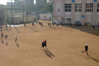 2月18日(土曜授業)に予定しています耐寒マラソン大会に向けて、子ども達が寒さに負けないで、休み時間に練習しています。