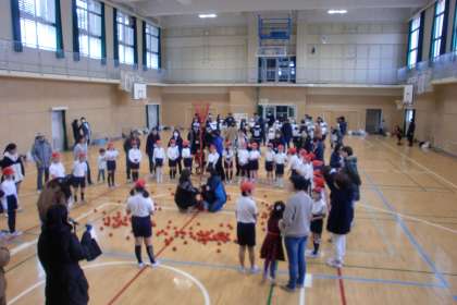 2年生の土曜授業は、親子で玉入れをしました。お家の人と一緒に活動できて、子ども達はとてもうれしそうでした。