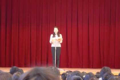 今週から、4年生、5年生、6年生の音楽を担当する杉浦希未(すぎうら のぞみ)先生が来られました。