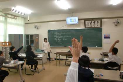 5年生が習熟度別少人数で、3グループに分かれて学習しています。