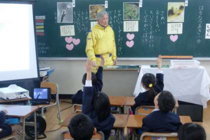 それぞれの季節の美しい写真をもとに、自然の素晴らしさや美しさ、力強さや不思議さに気づかせる学習をしました。今日は、田先生が授業をしました。
