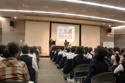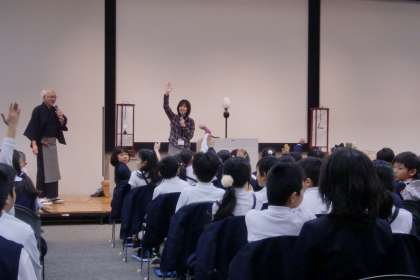 はじめにホールで昔の道具についての説明を聞いたり、使うところを見たりしました。