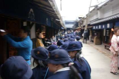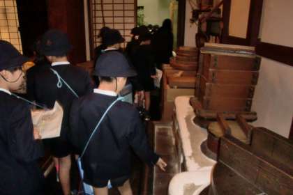 江戸時代の街並みを歩いて、家の中の様子を関学したり、昔の道具を見たりしました。