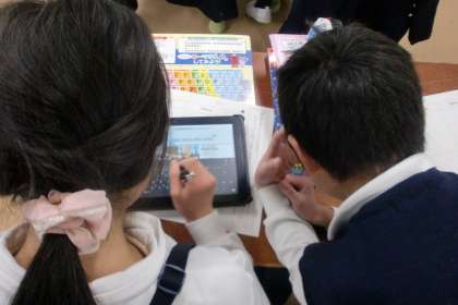 世界各地の地形や気候に合わせてつくられた家についての説明文を読んだ後、日本の伝統的な家である「竹富島の家」と「白川郷の家」について調べています。