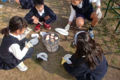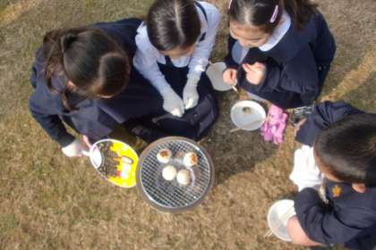 昔の道具である「七輪」を使ってお餅を焼きました。大変さよりも、おいしさの方が印象に残ったかもしれません。