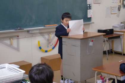 今日は、それぞれが自分が書いた「ことばのアルバム」をみんなの前で読みました。