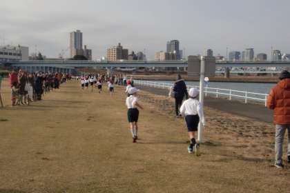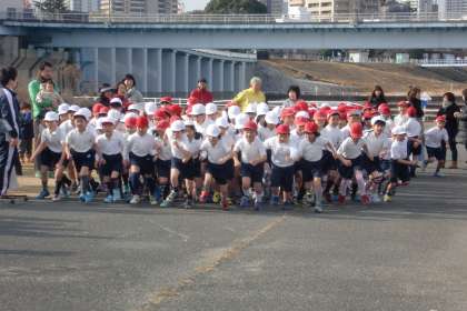 9時15分スタートで1.2キロメートルを走りました。お家の方も大勢応援に来てくださっていて、子ども達は張り切って走っていました。