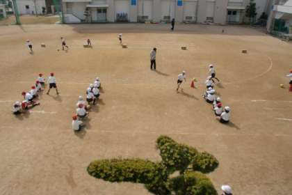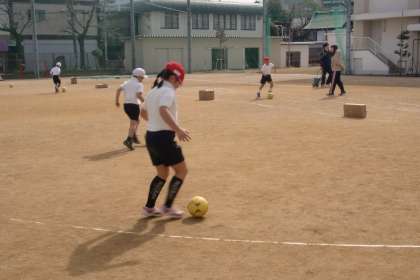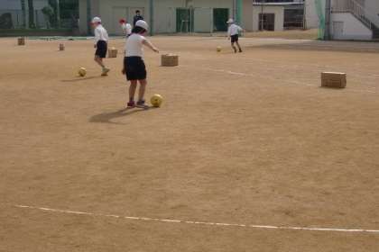 2年生全体でドリブルリレーをしました。みんな一生懸命にやっていましたが、ボールを蹴る経験のあるなしでドリブルの上手さが全く違っていました。やっぱり、どんな運動も経験しないといけませんね。