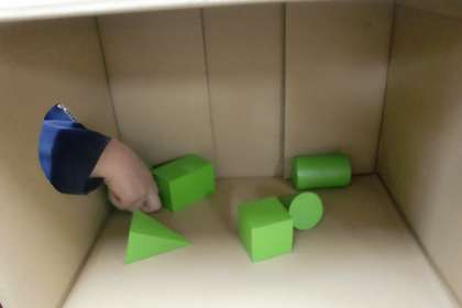 今日は、手探りで立体を探し出す学習をしていました。面の数や形、頂点や辺の特徴から立体を見つけ出します。立体の特徴が分かっていれば簡単です。