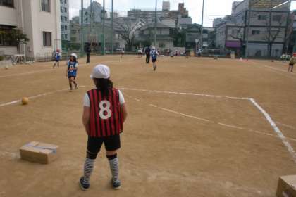 サッカーボールをけってゴールに入れるゲームをしています。日ごろボールを蹴る経験の少ない子ども達ですが,なかなか上手に蹴ることができていました