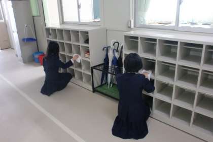 学校では、明日に備えて、掃除をしたり(新6年生)、歓迎演奏(新2年生)の練習をしたりしています。