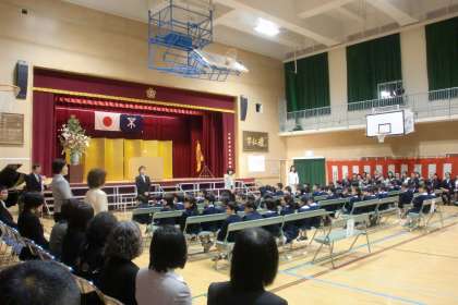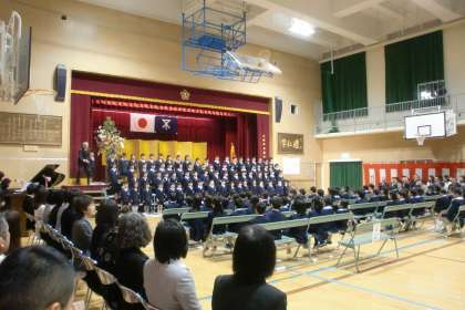 長柄公園の桜の花がきれいに咲いたこの日に、75名の1年生を迎えました。