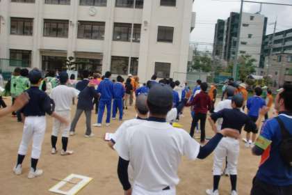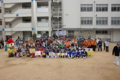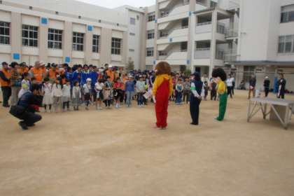 豊仁小学校を出発して、新豊崎中学校までパレードしました。